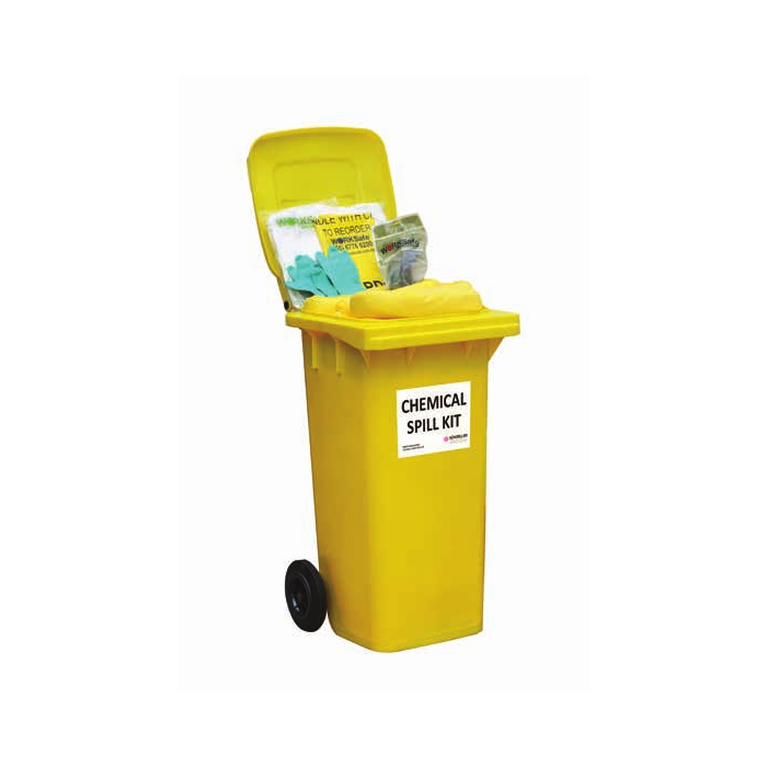 120 L Heavy duty, water proof container with two wheels, filled with sorbents.