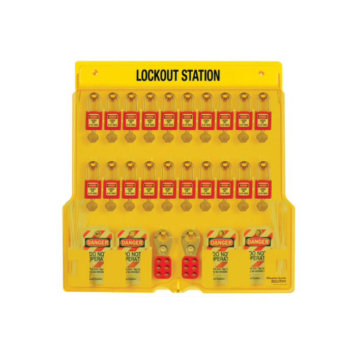 Master Lock 1484BP410 20-Lock Covered Station with 410RED Zenex Thermoplastic Padlocks