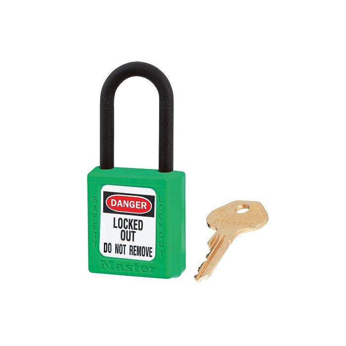 - The Master Lock No. 406GRN Dielectric Thermoplastic Safety Padlock features a 1-1/2in (38mm) wide Zenex Thermoplastic green body and a 1-1/2in (38mm) tall, 1/4in (6mm) diameter plastic shackle to help prevent electrocution and arc flashing and to prevent electrical current from shackle to key.