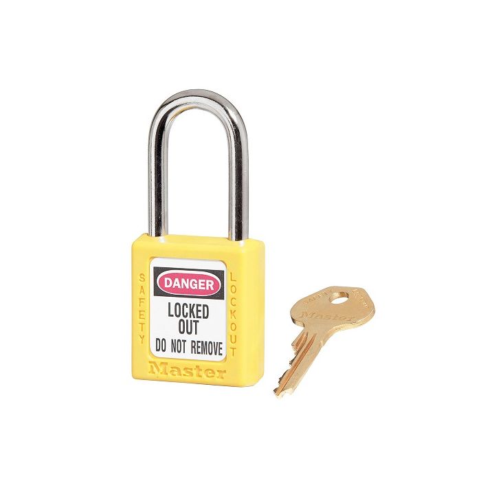Master Lock 410YLW Yellow Zenex Thermoplastic Safety Padlock, 1-1/2in (38mm) Wide with 1-1/2in (38mm) Tall Shackle