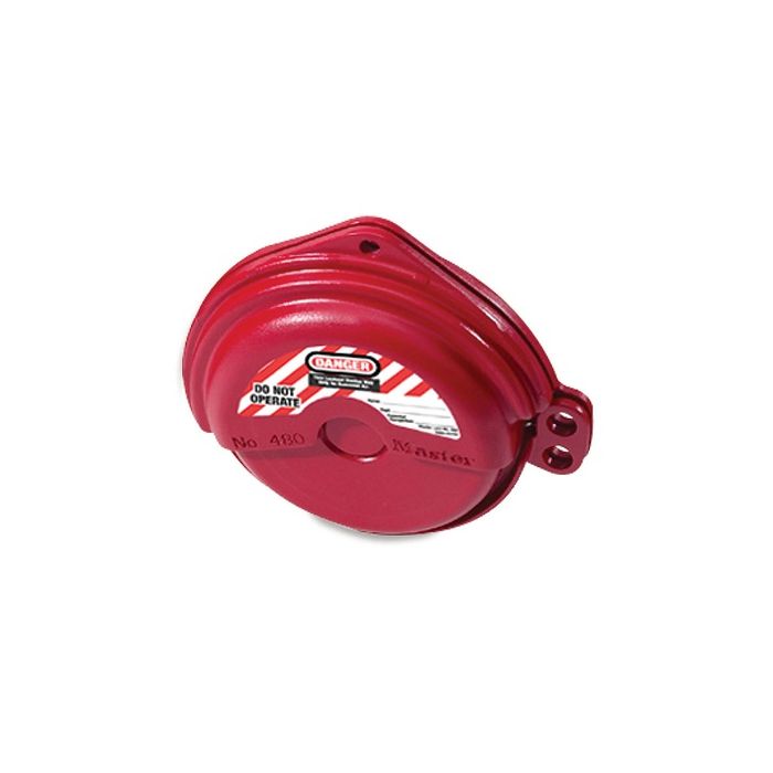 The Master Lock No. 480 Rotating Gate Valve Lockout Device features a 1-1/16in (30mm) depth and 3/4in (19mm) stem opening for 1in (25mm) to 3in (76mm) diameter valve handles to surround the valve operating handle to protect against accidental valve opening.