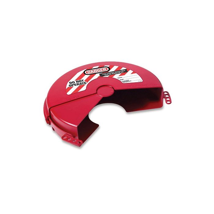 The Master Lock No. 483 Rotating Gate Valve Lockout Device features a 2-3/4in (70mm) depth and 3-1/2in (89mm) stem opening for 6in (152mm) to 10in (254mm) diameter valve handles to surround the valve operating handle to protect against accidental valve opening.
